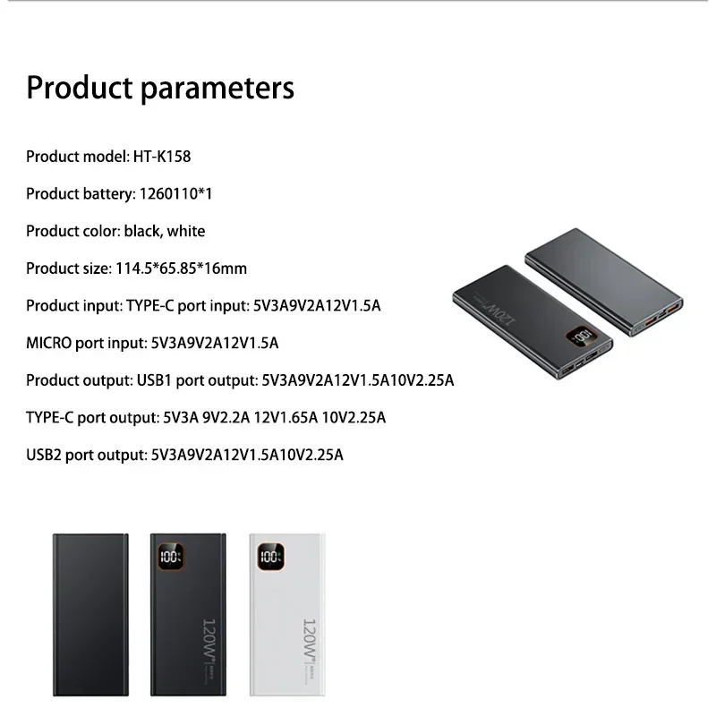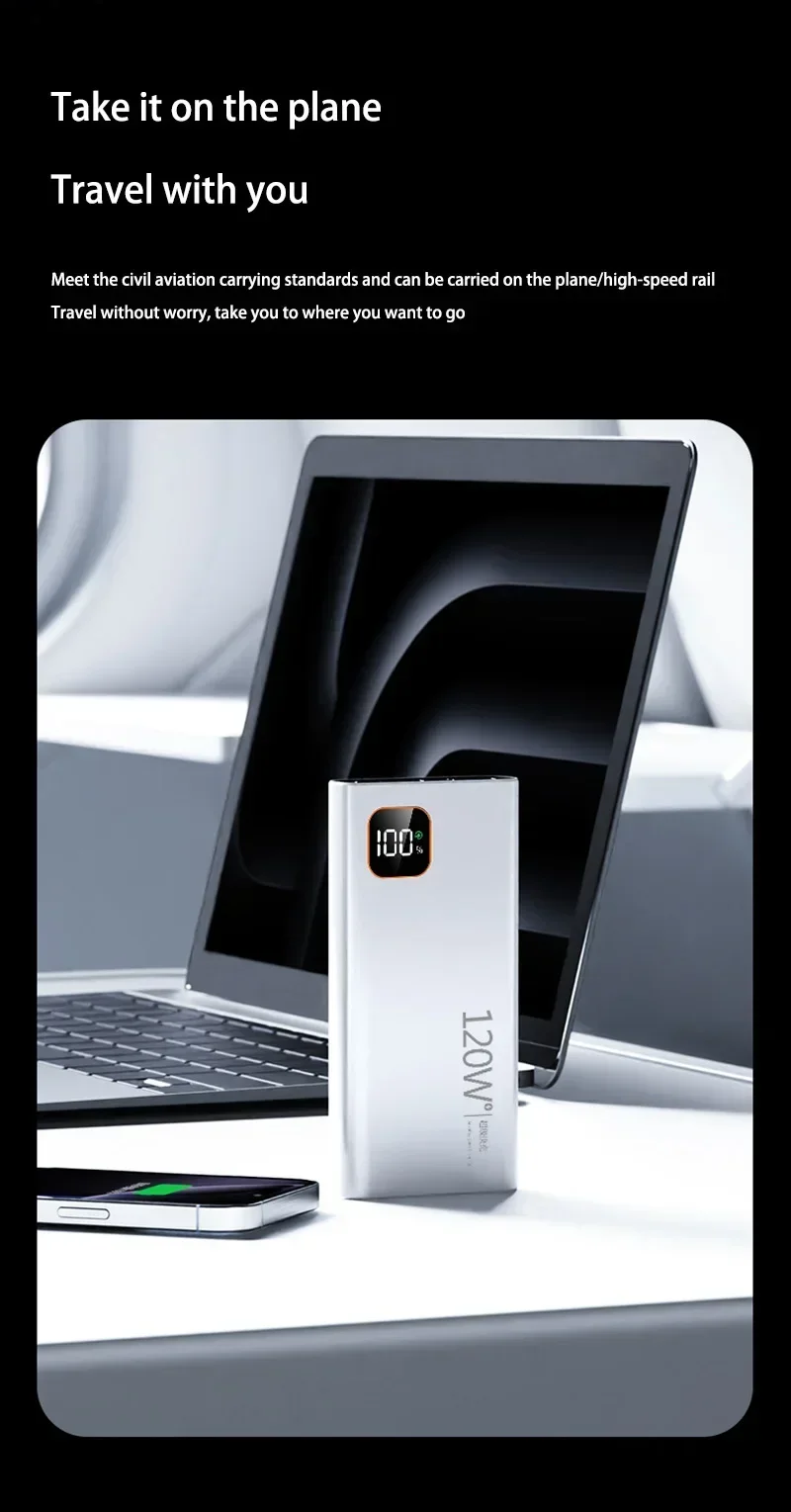 A pesar de su enorme capacidad, esta batería externa es sorprendentemente compacta y ligera, ideal para viajes, aventuras al aire libre o uso diario. Su diseño elegante y ergonómico cabe cómodamente en la mano o el bolsillo, permitiéndote llevarla fácilmente a donde vayas. Ya sea que vayas al trabajo, explores la naturaleza o simplemente te relajes en casa, esta batería externa te proporciona energía de respaldo confiable cuando más la necesitas.