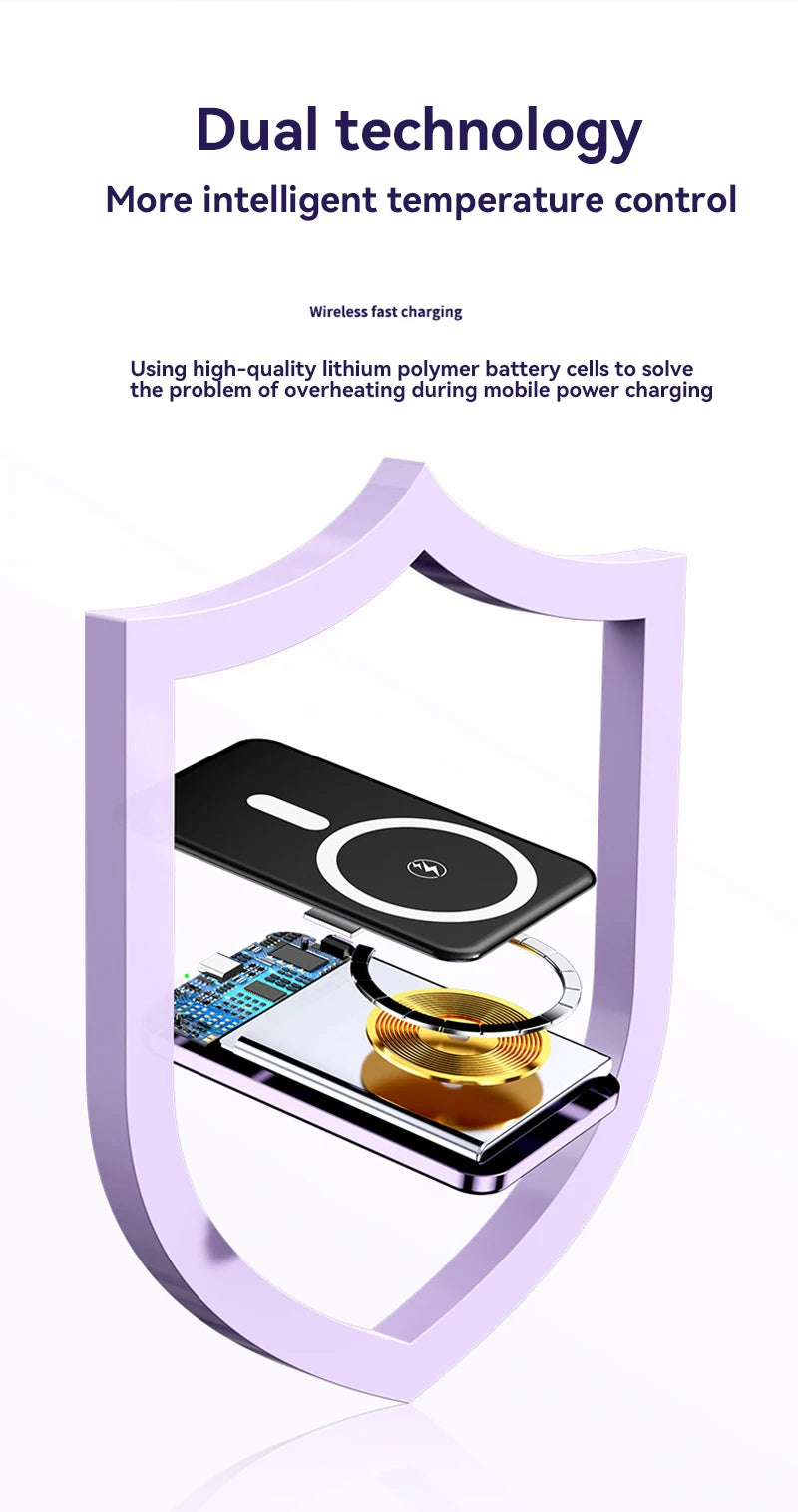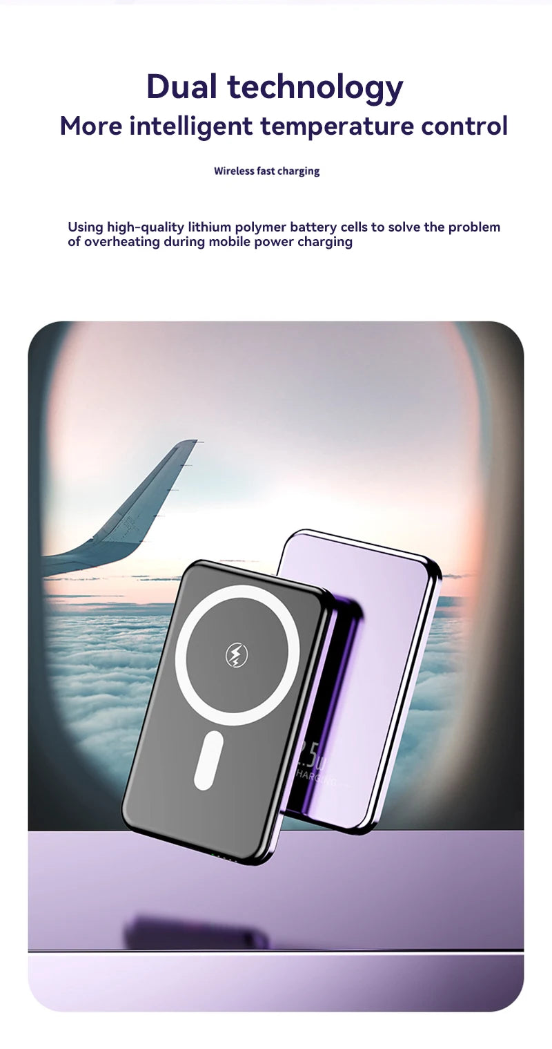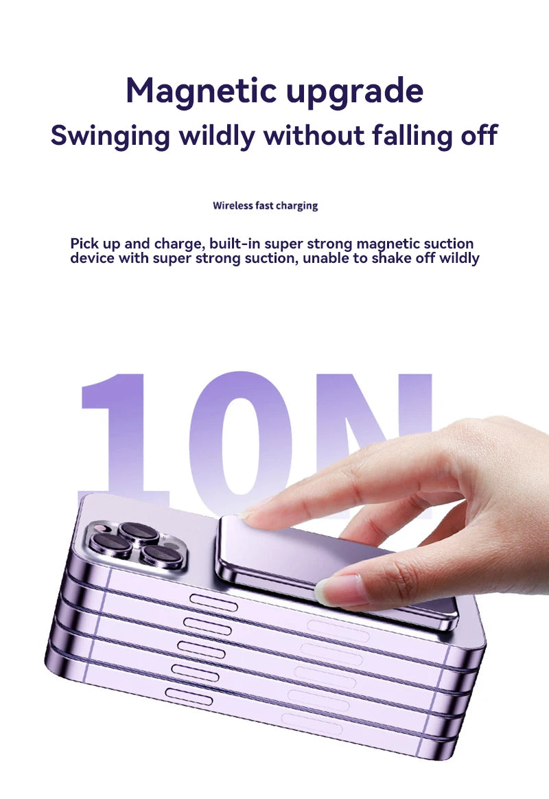 Nota: este es un banco de energía con cargador inalámbrico magnético, función de carga inalámbrica magnética para iPhone 16 15 14 13 12 Series directamente. Otro teléfono móvil con carga inalámbrica quiere usar la función magnética, necesita usar un anillo magnético o una funda para teléfono magsafe.