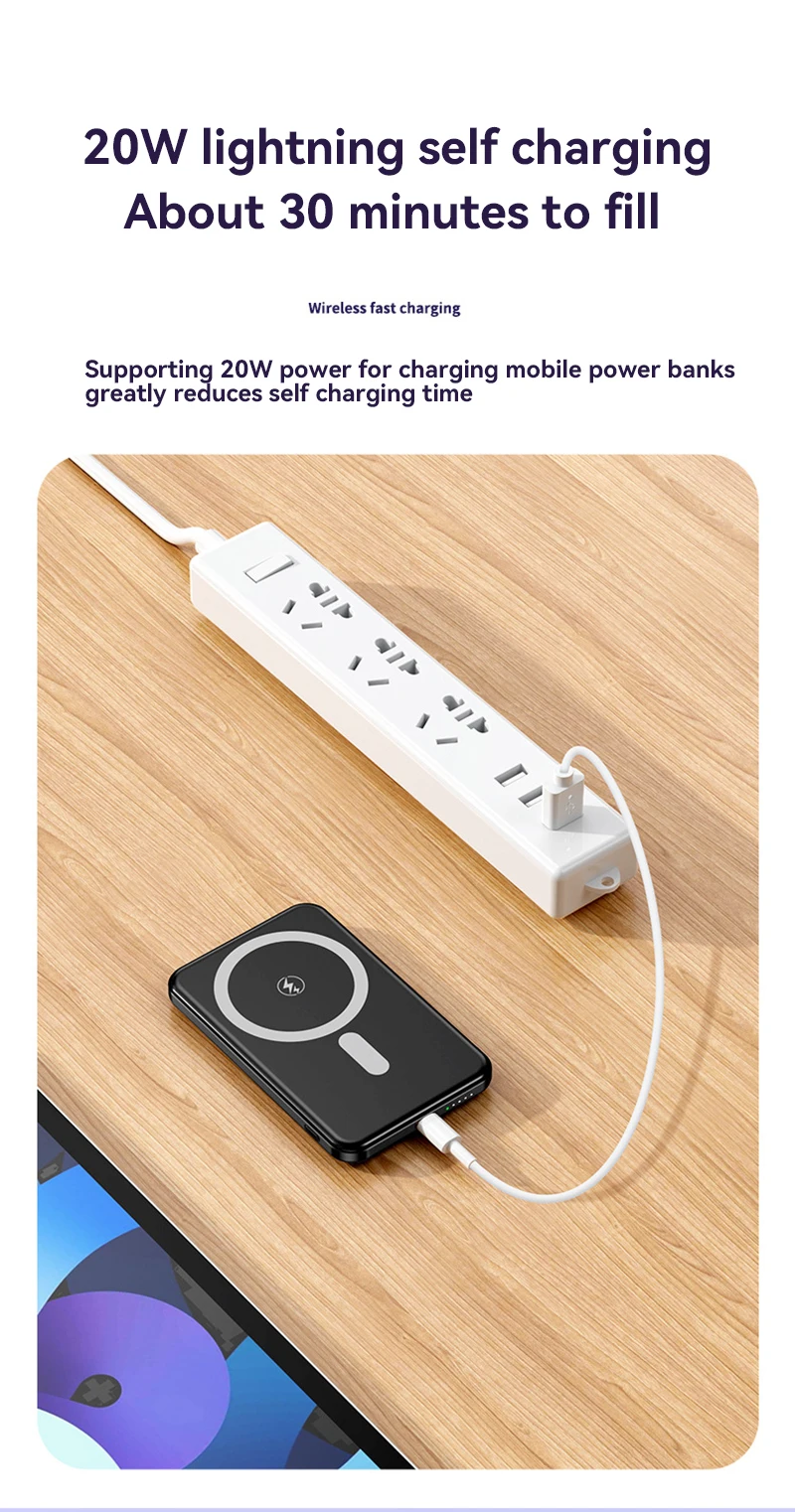 Cargador portátil magnético ultrafino Xiaomi de 500.000 mAh y 22,5 W PD con carga ultrarrápida para iPhone y Samsung.