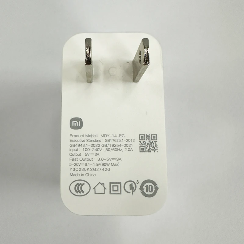 90W fast charger also compatible with 67W/55W/50W/45W/40W/33W/30W/27W/18W Xiaomi smartphones and Pads.