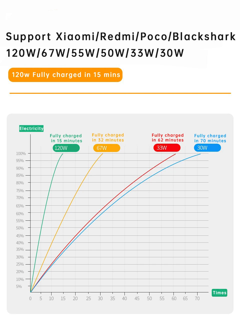 1. Debe ser un cargador Xiaomi original de 27w, 30w, 33w, 55w, 67w, 120w o mayor potencia.