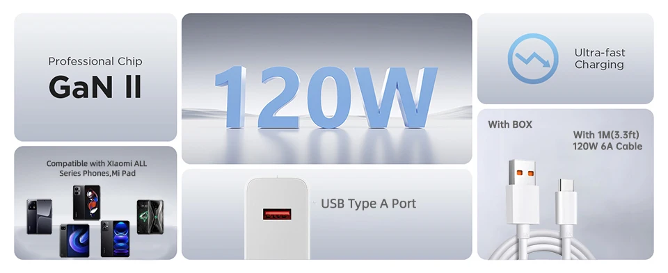 Xiaomi Usb GaN Charger 120W Mi Hyper Charge Adapter Mi 14 Pro 13T 12 Poco X6 F4 F7 Ultra Blackshark 5 6 Redmi Note 13 12 Cable