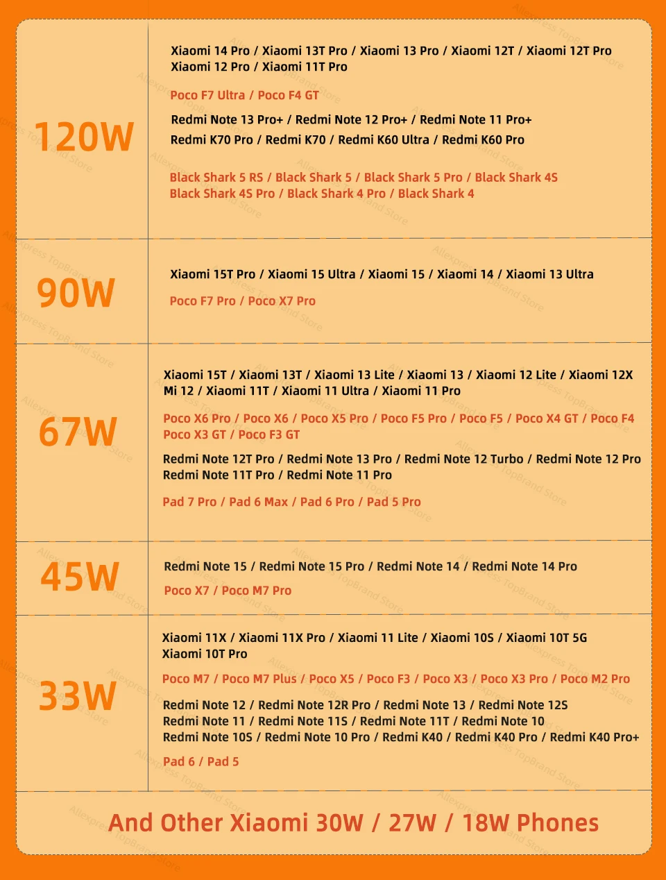 And 50W 55W 33W 30W 27W 18W XIAOMI phones