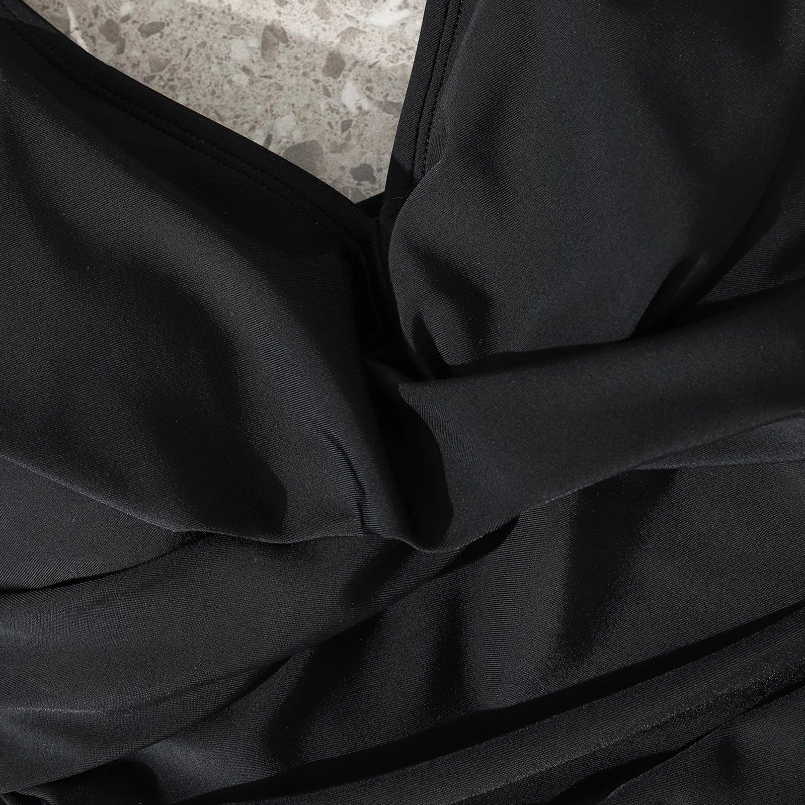 Traje de baño tankini de verano para mujer, color sólido, sin mangas, cuello en V, falda de cintura alta, trajes de baño