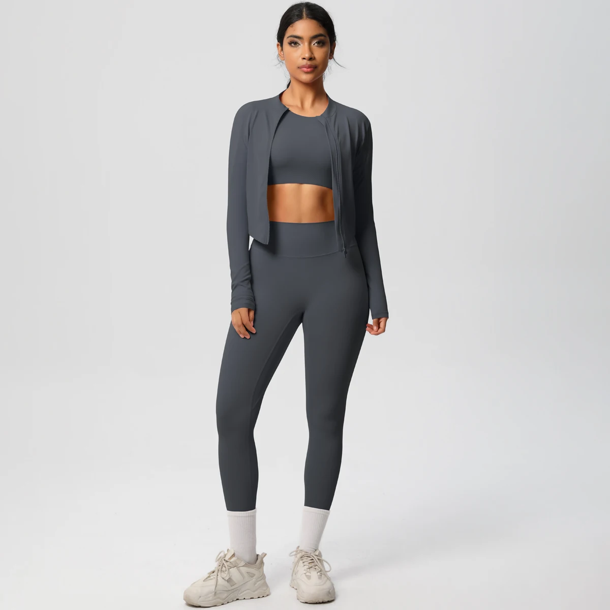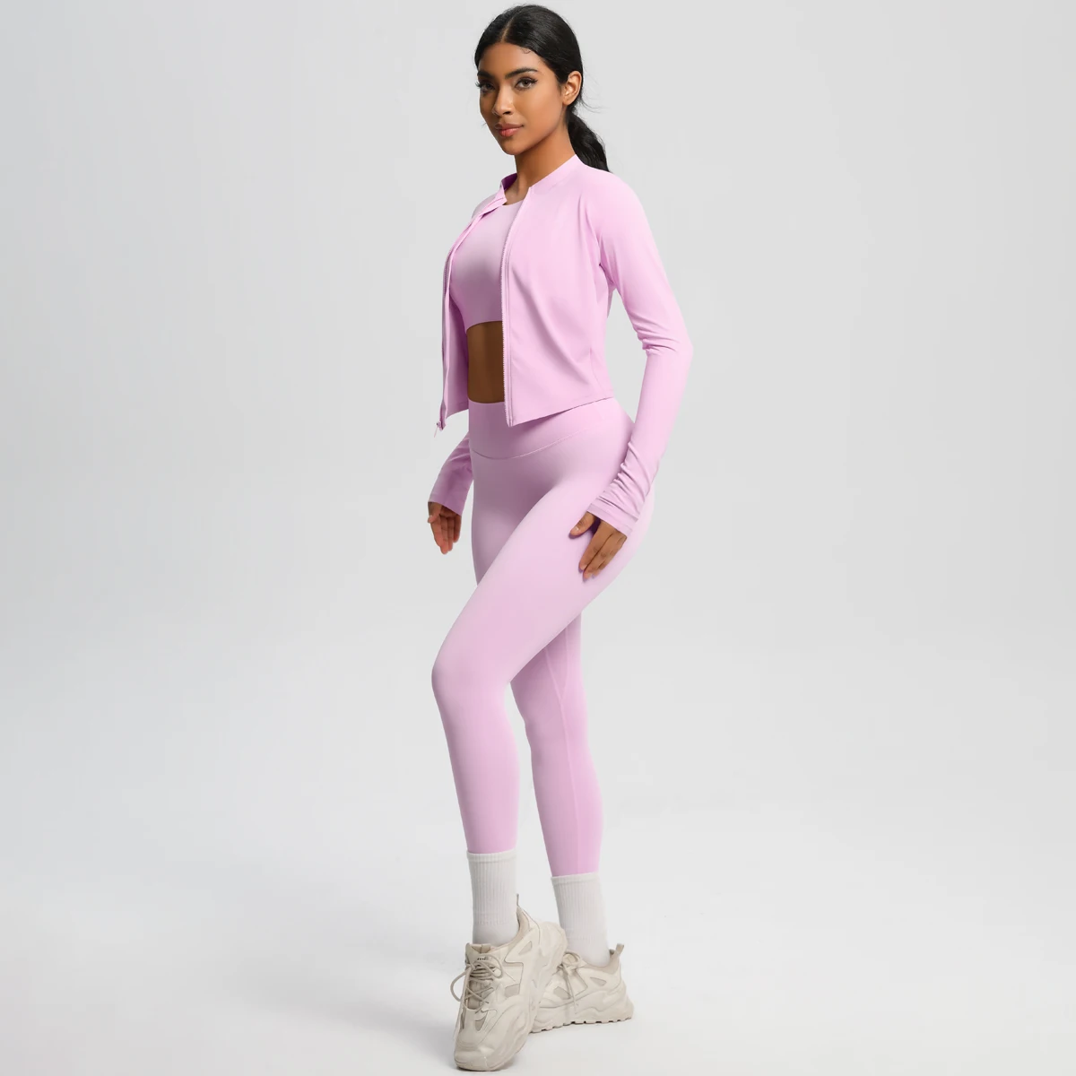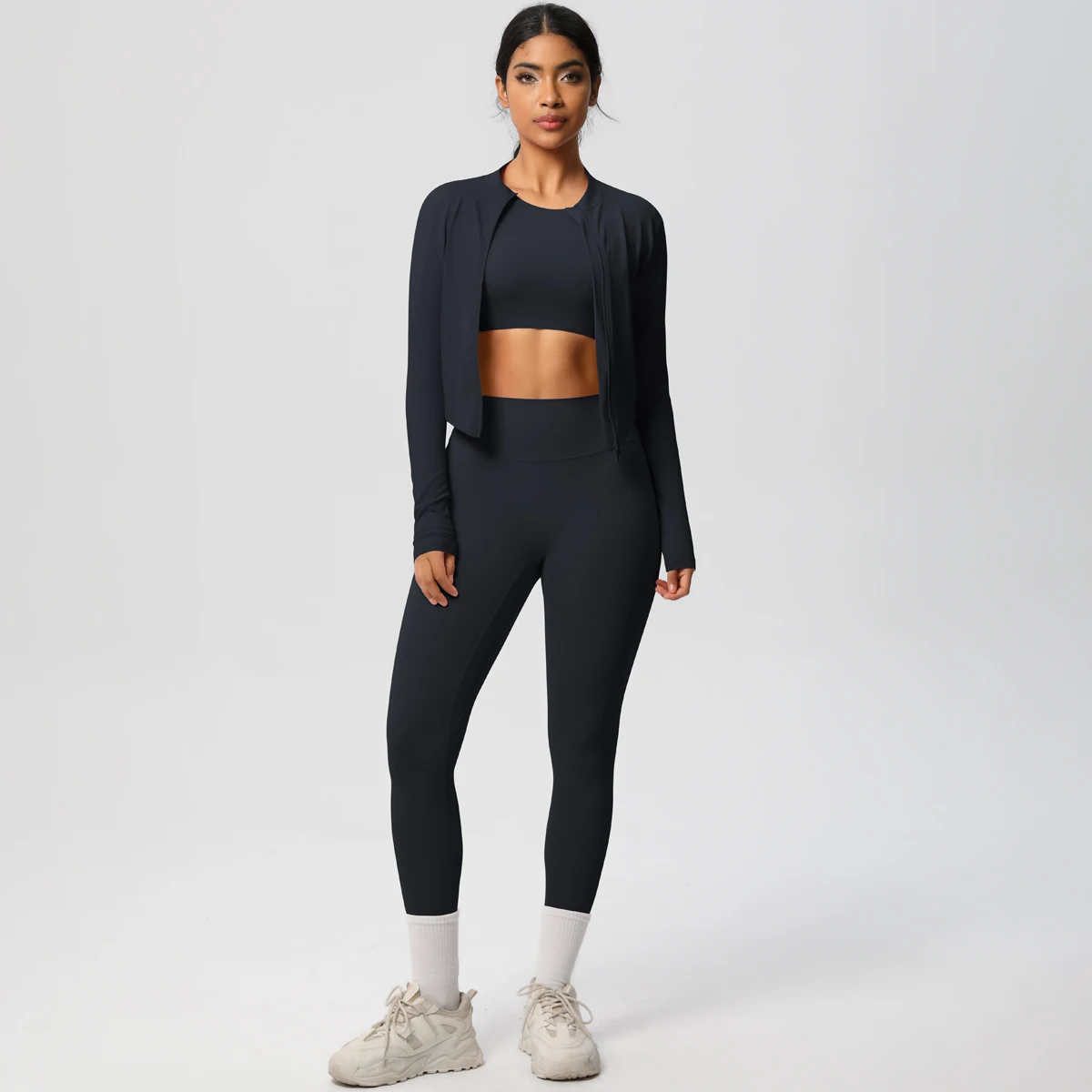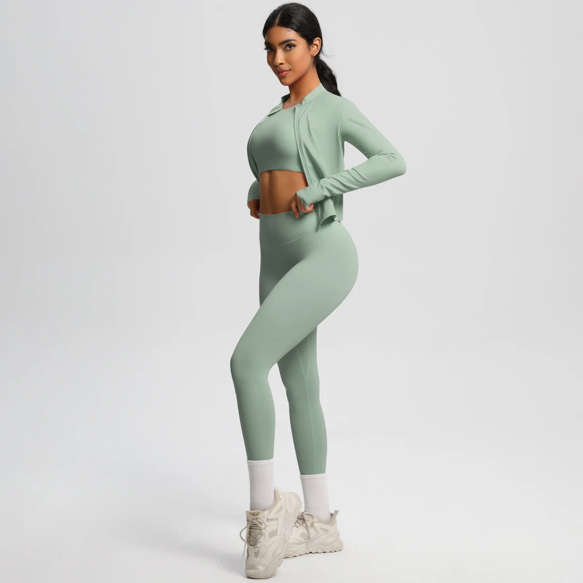 Conjunto de leggings de yoga, top deportivo con cremallera y manga larga, transpirable, para correr al aire libre, pantalones de yoga ajustados e informales, ropa de fitness
