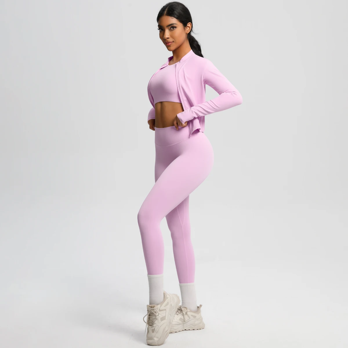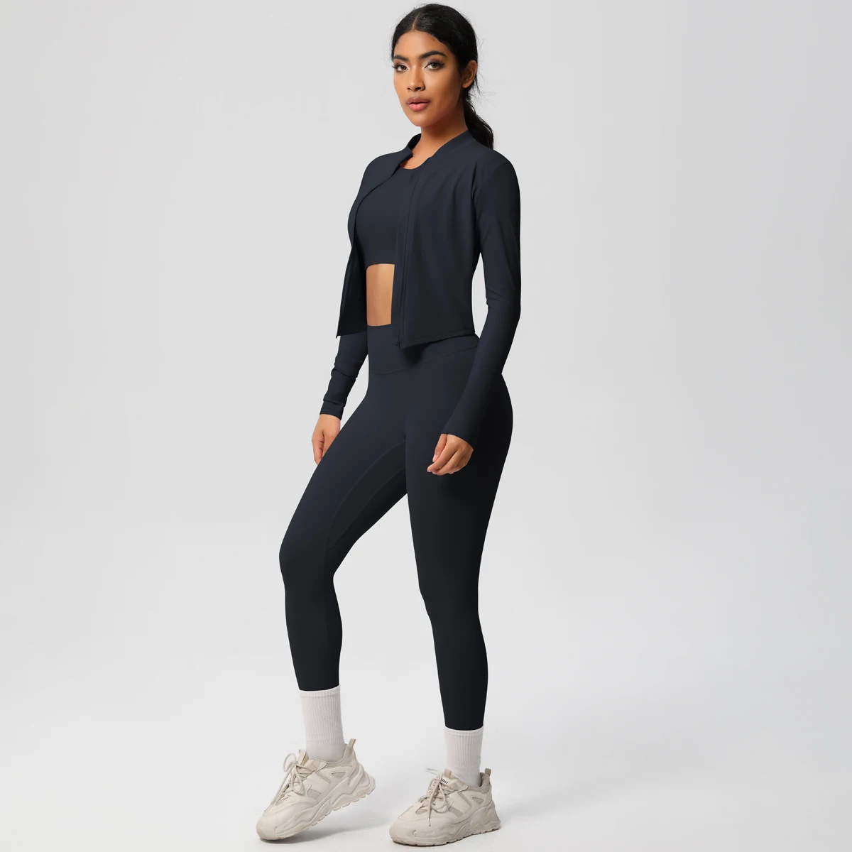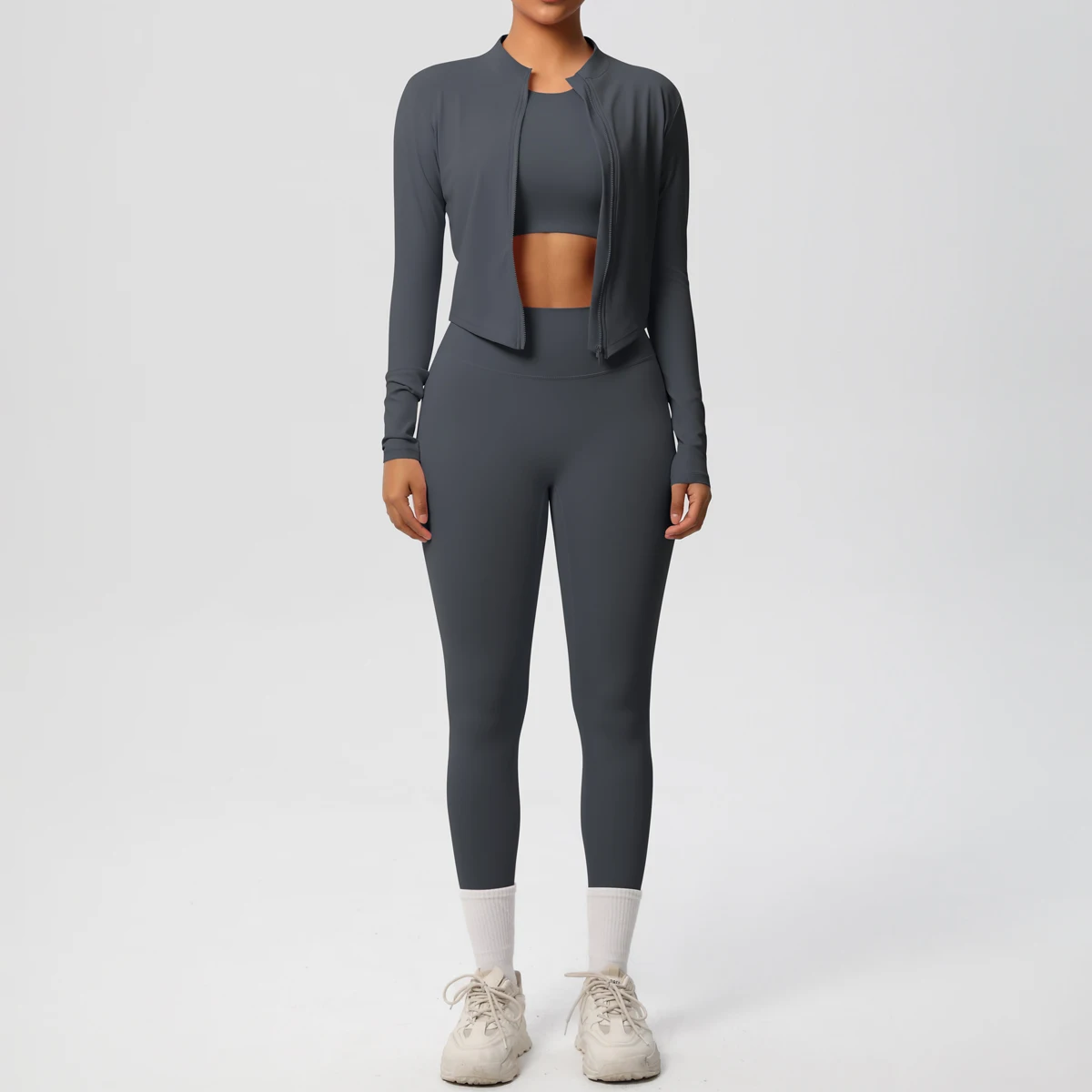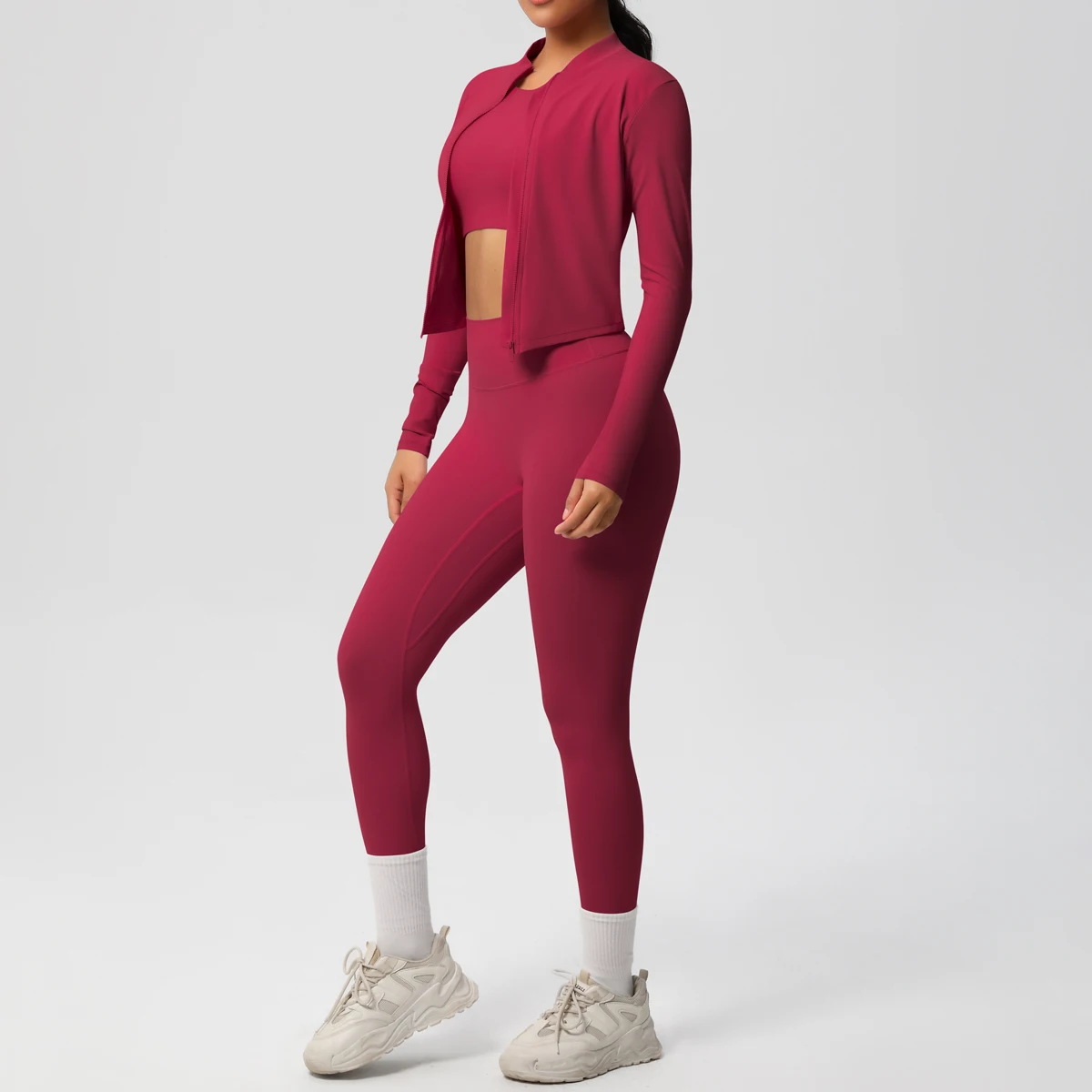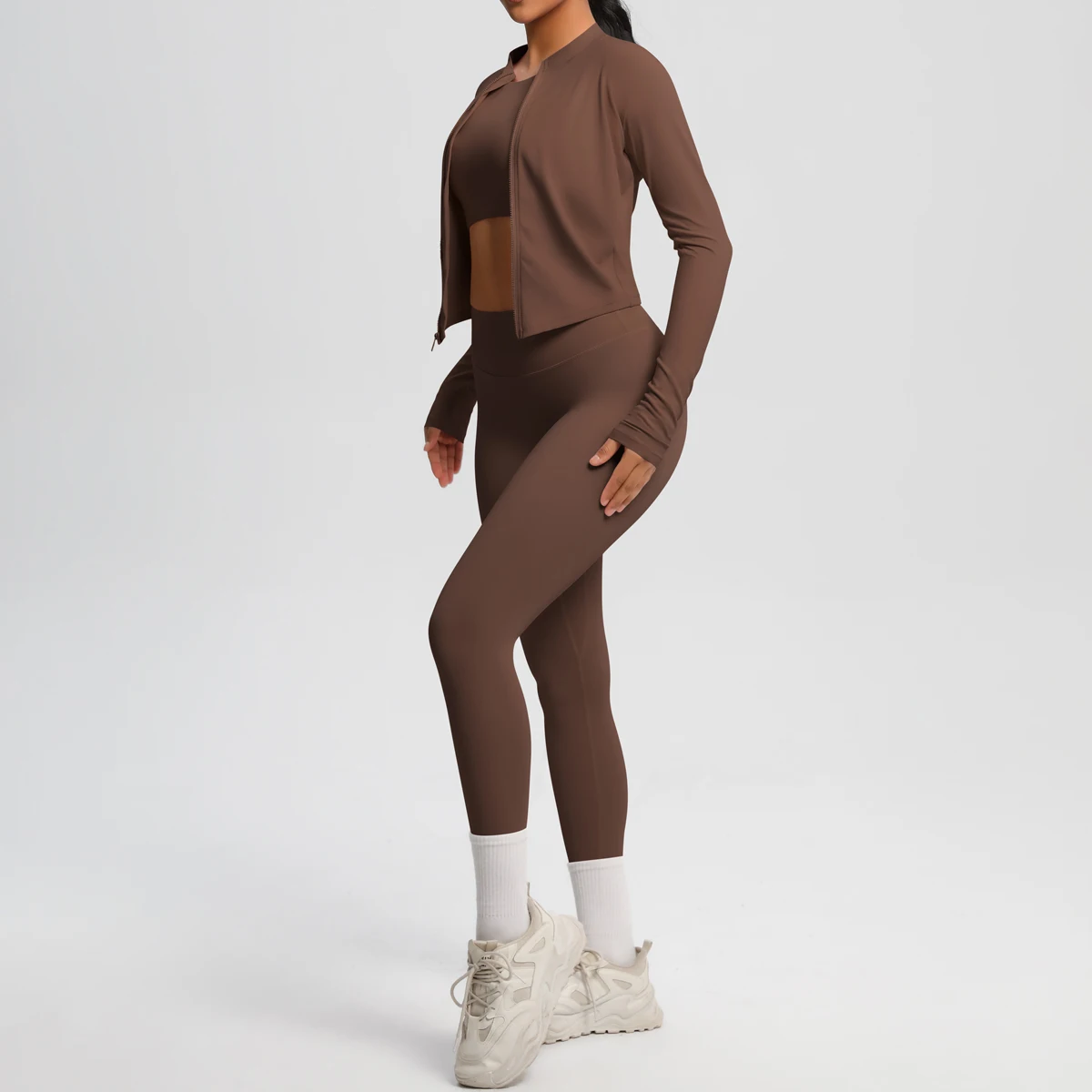 Conjunto de leggings de yoga, top deportivo con cremallera y manga larga, transpirable, para correr al aire libre, pantalones de yoga ajustados e informales, ropa de fitness