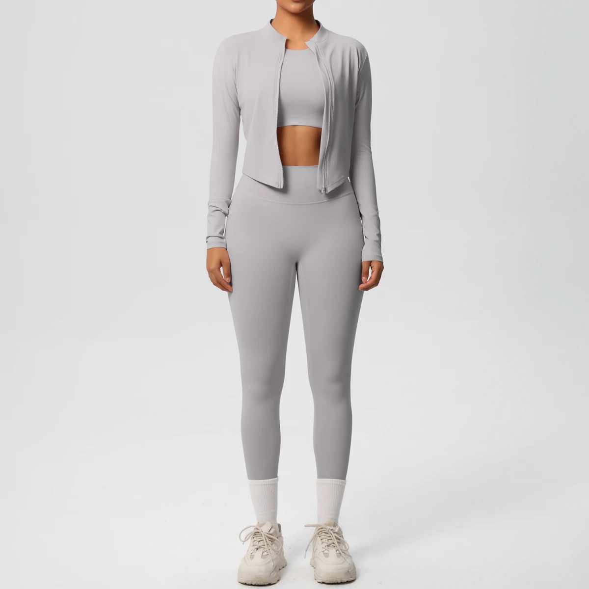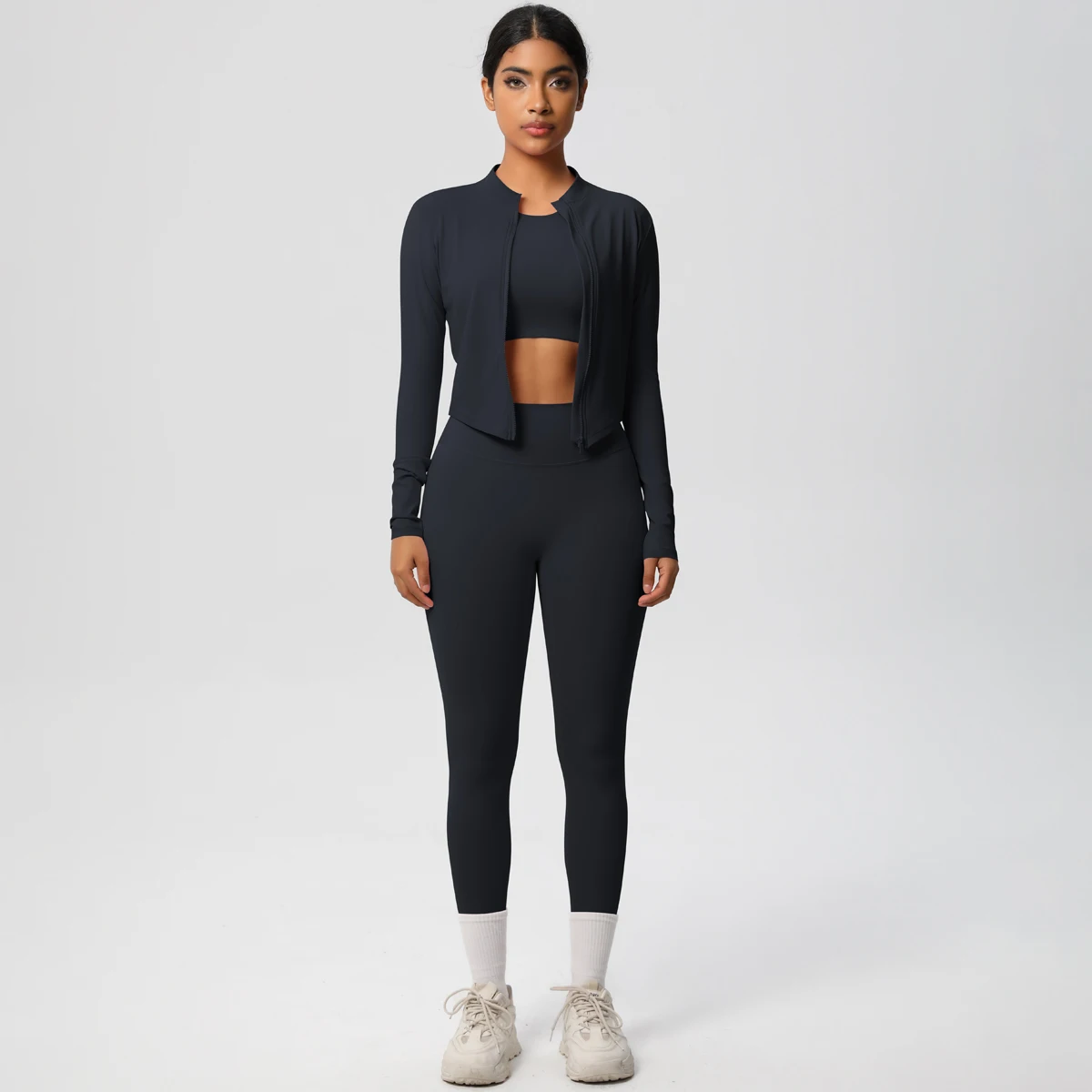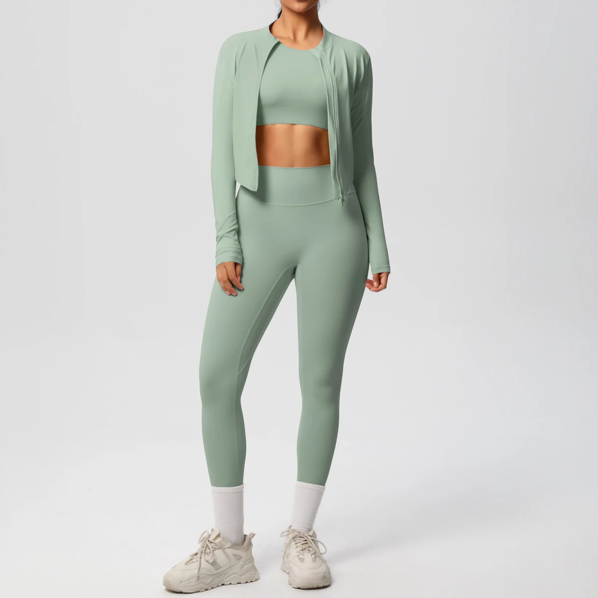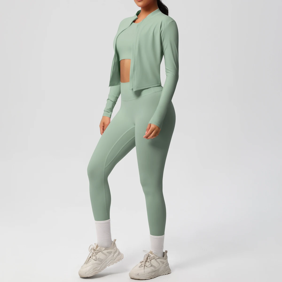 Conjunto de leggings de yoga, top deportivo con cremallera y manga larga, transpirable, para correr al aire libre, pantalones de yoga ajustados e informales, ropa de fitness