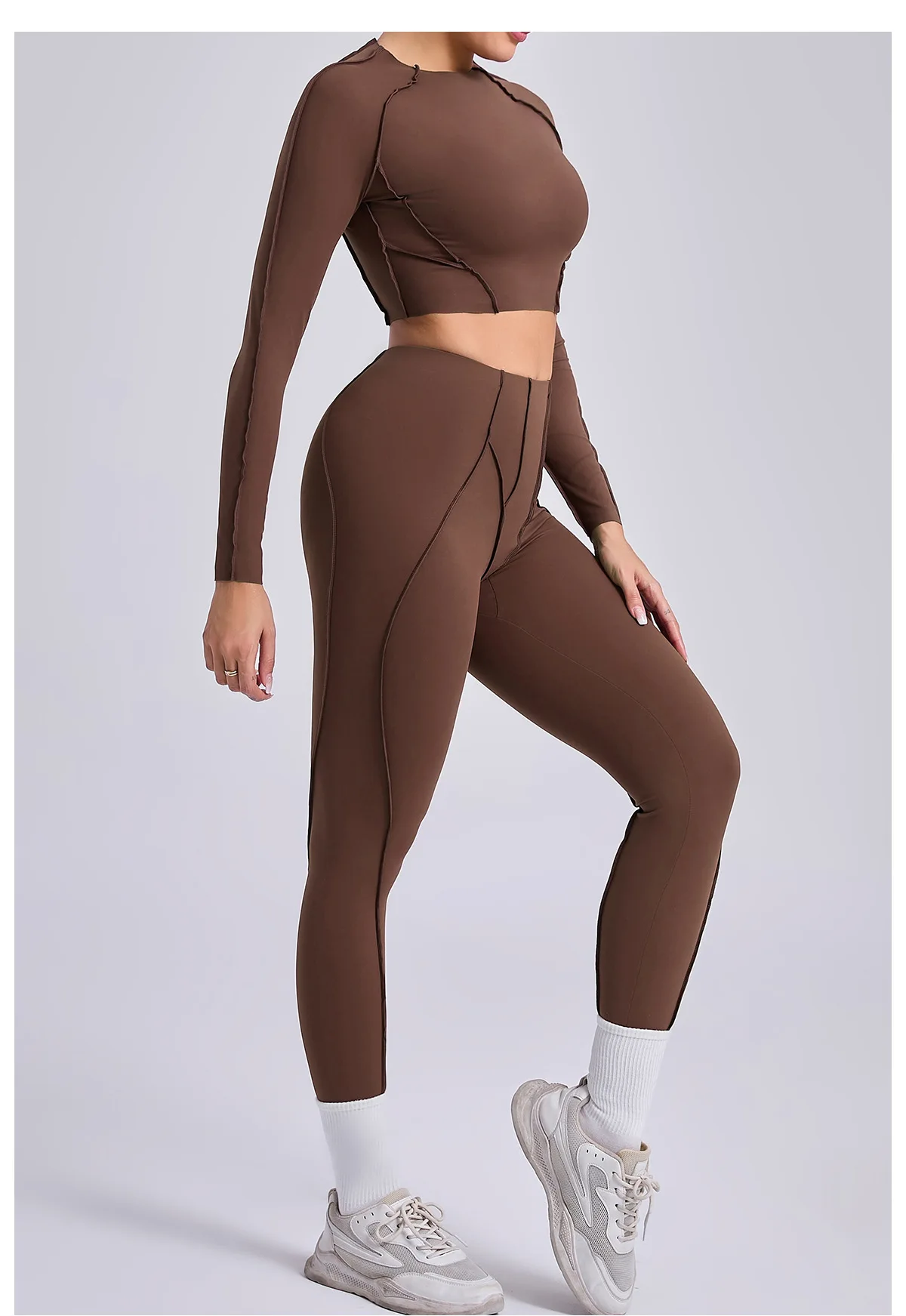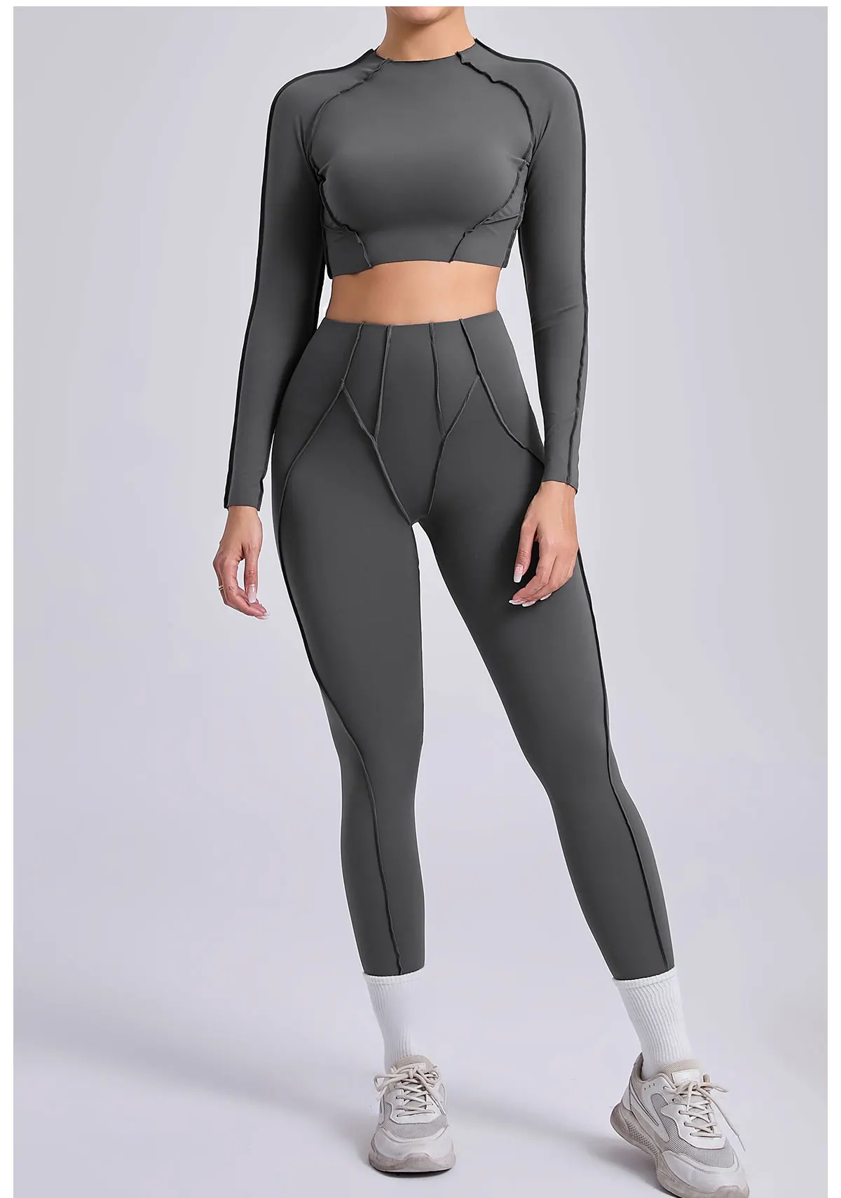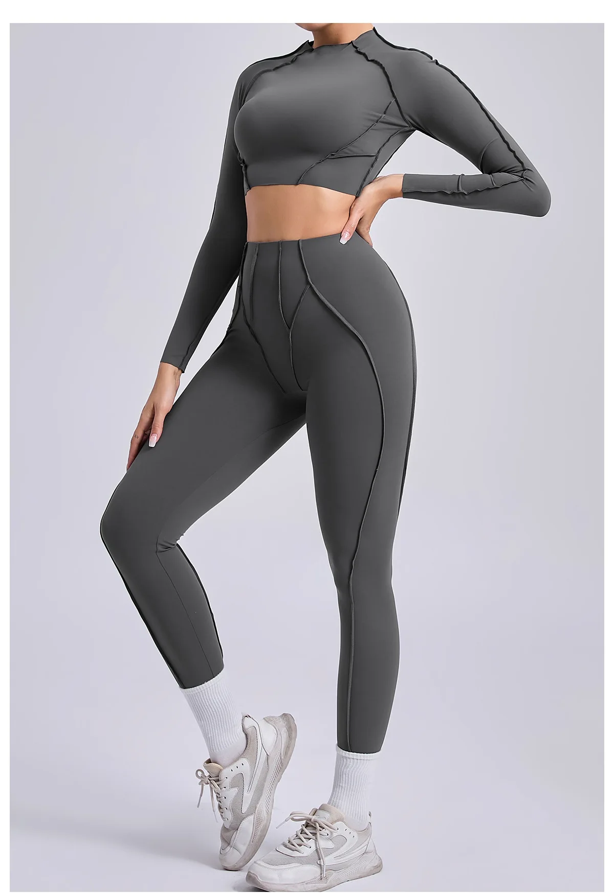 Yoga Set Workout Tracksuits 2 Pieces Gym Clothes Sportswear Yoga Suits For Women Fitness Set Sports Long Sleeved Gym Leggings