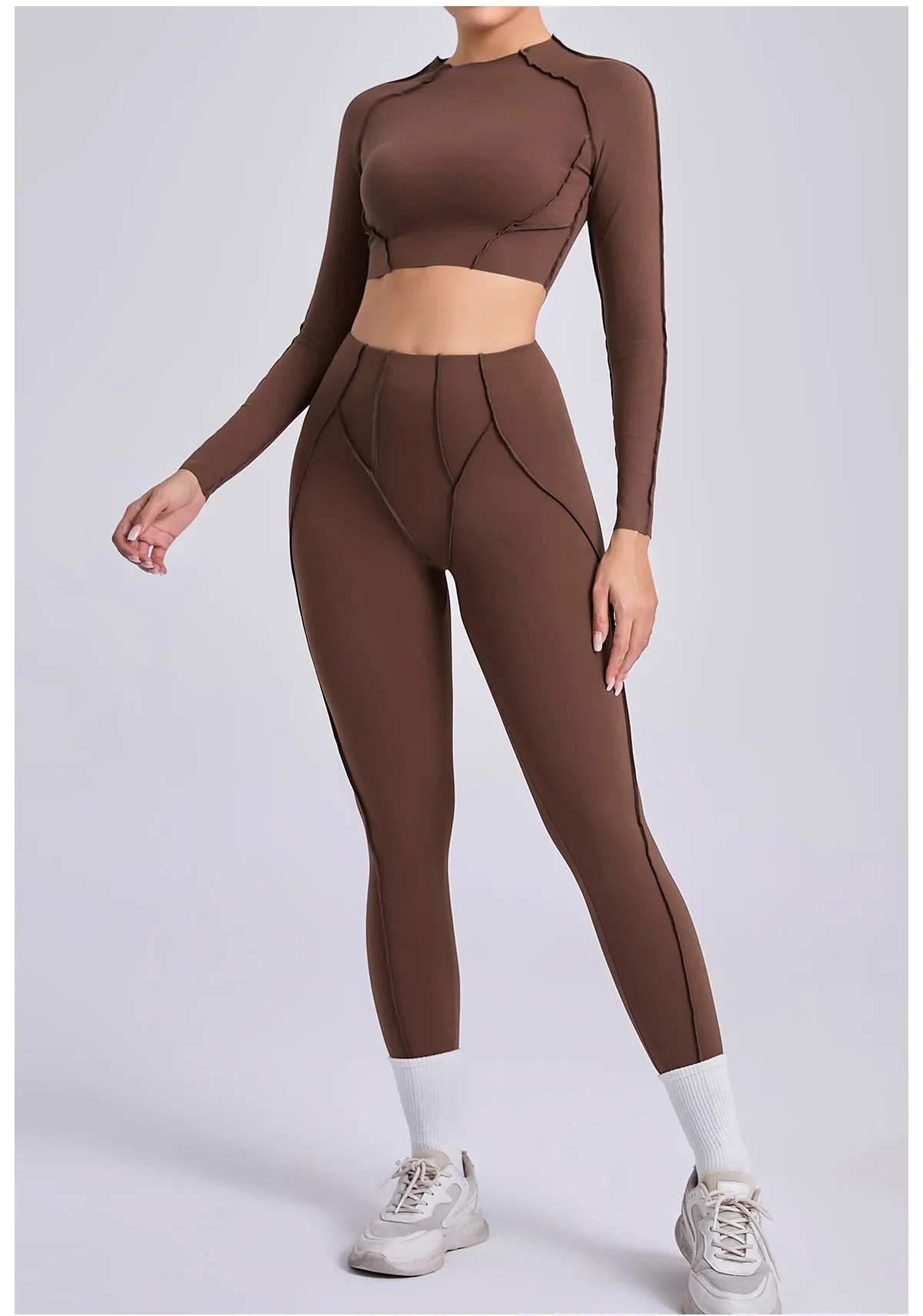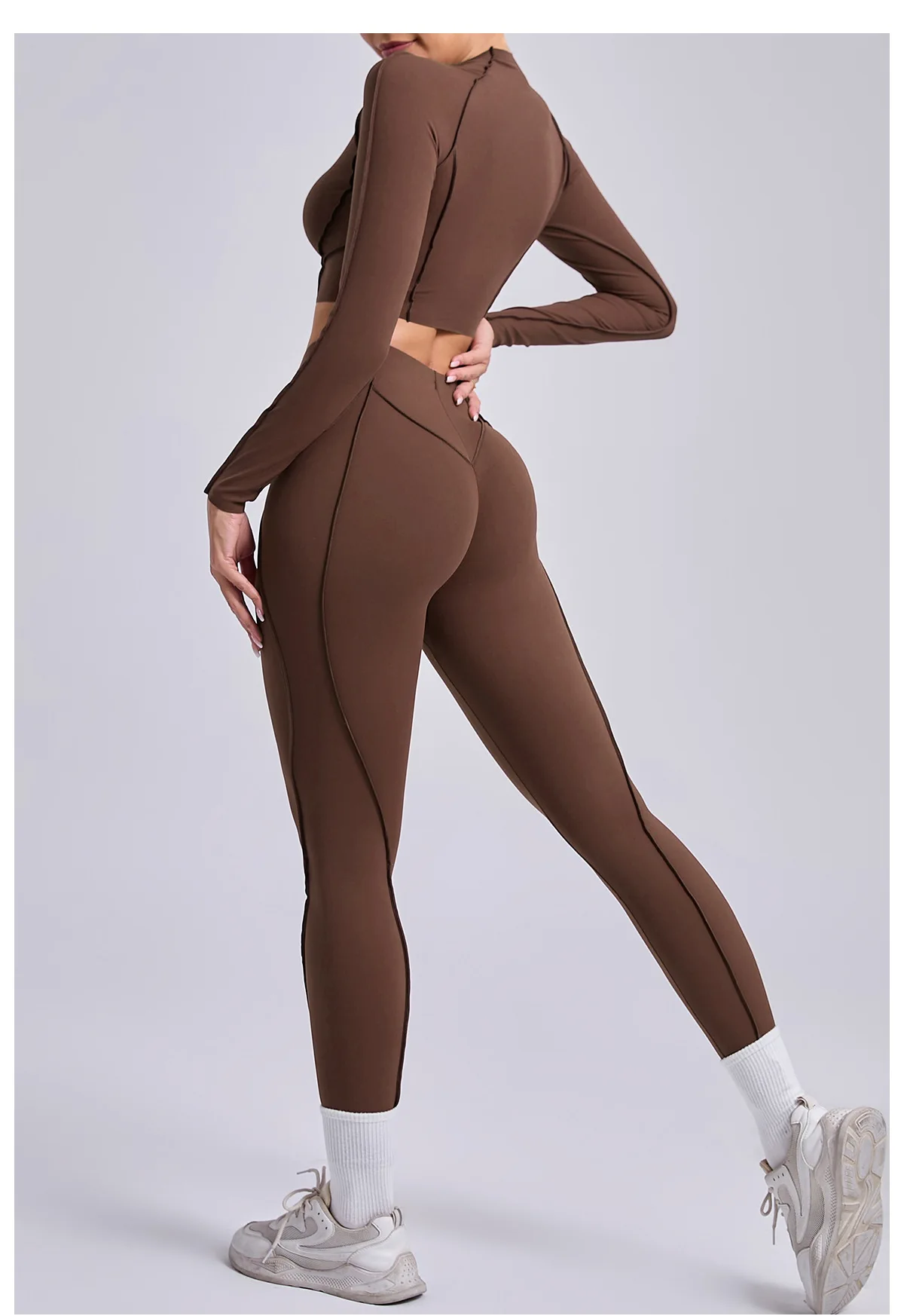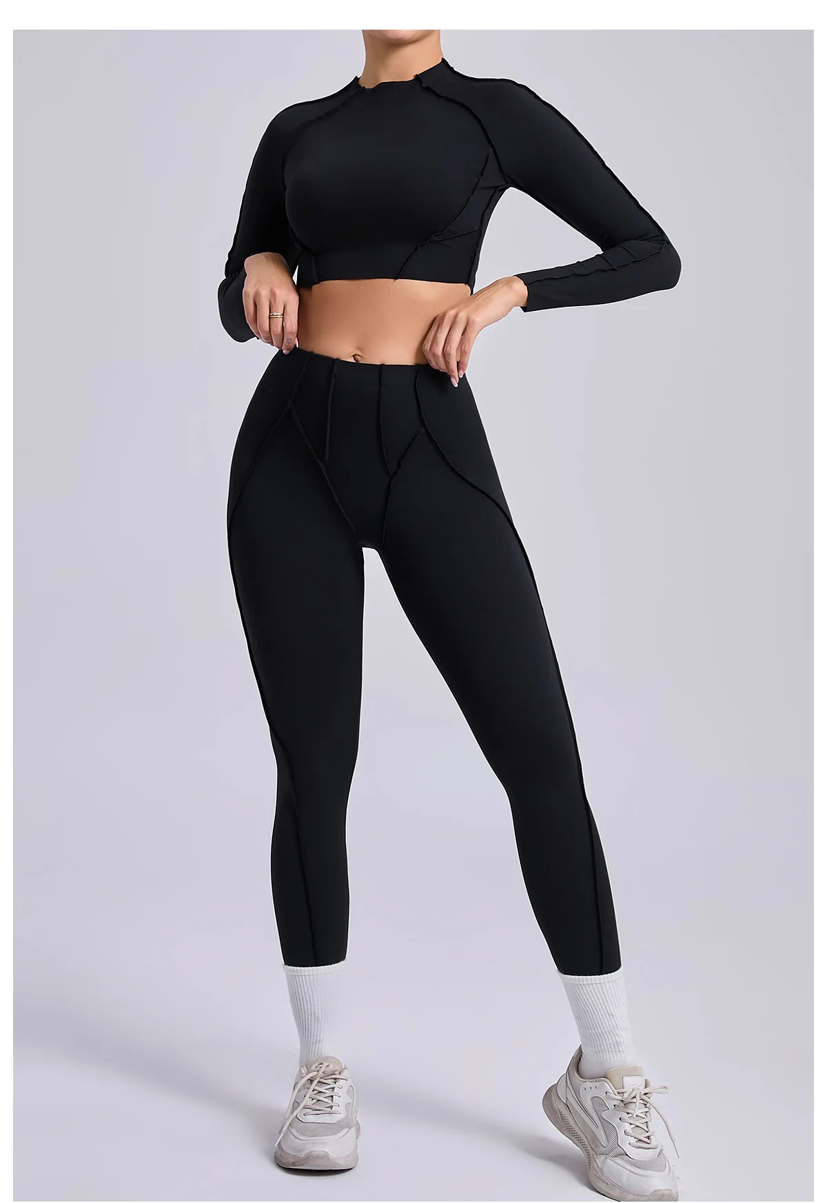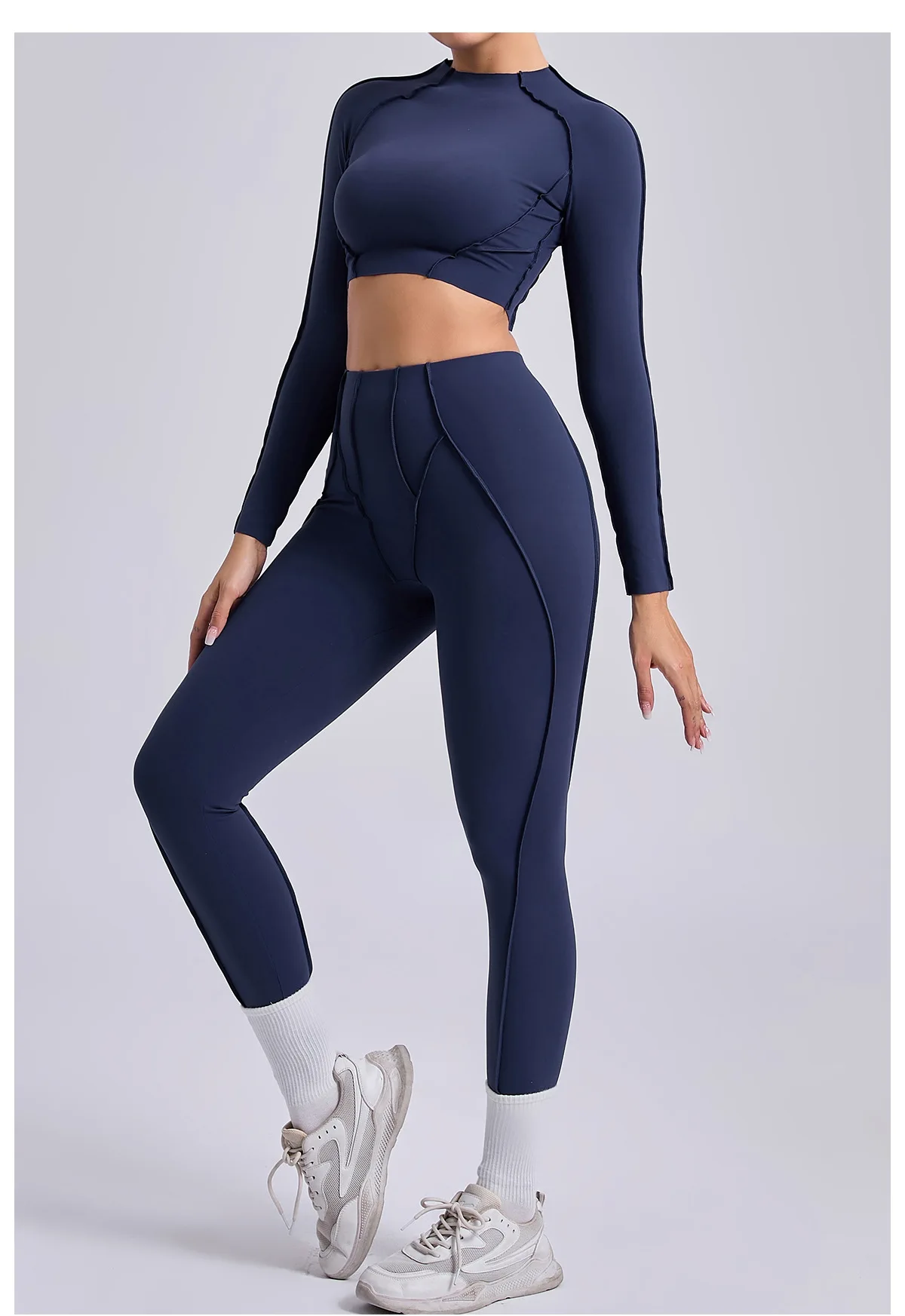 Yoga Set Workout Tracksuits 2 Pieces Gym Clothes Sportswear Yoga Suits For Women Fitness Set Sports Long Sleeved Gym Leggings