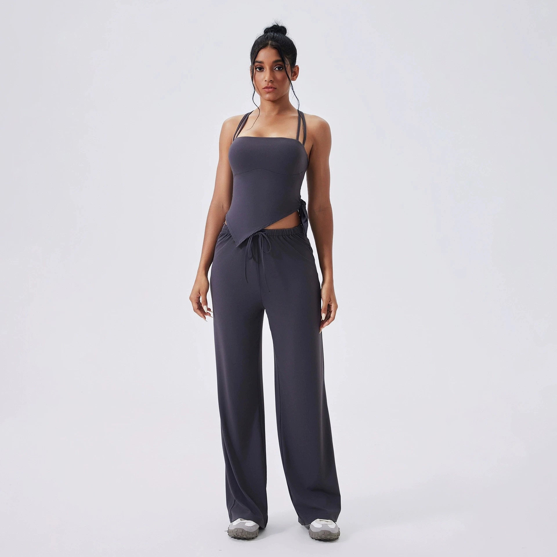 Conjunto de yoga de 2 piezas para mujer, camisetas deportivas con lazo lateral, top corto de entrenamiento, conjunto de fitness, leggings de cintura alta para correr y gimnasio